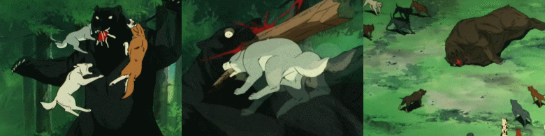 Gin és társai komoly veszteségek árán, legyőzik Madarát. A tigrisek, és John is elvégezték a feladatukat és elfoglalták a helyüket. Gin összehívja a falkát, hogy az utolsó erődöt az ő vezetésével vegyék be. Közben a fejedelem Akakabuto egy hasonmásával folytatott küzdelmet, mikor megjelentek a medve társai, és a kimerült kutyát farönkök segítségével élve eltemették. Mindeközben a medvék csapdát állítottak Ginnek és csapatának. A medvék, és vezetőjük, Mosa kemény ellenfélnek bizonyul. Ráadásul a szörnyeteg, Gint pécézi ki, aki egy menedékházba menekül. Míg odakint Benizakura lelassítja a medvét, Gin a menedékházban rátalál Benre. A fiatal kutyának remek ötlete támad, mikor meglát egy kötelet. Körbetekeri azt a medve körül, ám sajnos a fenevad okosabb, mint gondolnák, így a párosra dönti az épületet. Miközben Moss segít nekik kiszabadulni, Benizakura megragadja a Mosa köré tekert kötél végét és a közeli tóba húzza. A tó fenekén körbetekeri azt egy fatörzs körül, azonban beszorul az egyik mancsa. Miután Gin kiszabadul a romok alól és elmondják neki, mit csinál Benizakura, azonnal utánuk ugrik. Mikor látja, hogy az öreg kutya mancsával mi történt, segíteni akar, de Benizakura visszazavarja a felszínre. Így hal meg Benizakura a világ legerősebb kutyája.