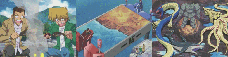 Újdonsült győztesként Jonouchi önbizalma megnő. Tovább indulnak hát, hogy újabb ellenfél után nézzenek. A párbajozás azonban meghozza az étvágyukat, ám ételt nem vittek magukkal. Jonouchi-nak sikerül kiszagolnia, hogy valahol halat sütnek, és a társaság meg is indul abba az irányba. Azonban, mikor nekiesnek a talált zsákmánynak, megjelenik a sült hal tulajdonosa, Ryota Kajiki. Kiderül, hogy ő is párbajozó, és miután megebédeltek kis is hívja Yugi-t egy párbajra. Az újfiú a vízi szörnyeket részesíti előnyben, így a játék alatt sok új kártyát is megismerhetünk. Ahogy az általában lenni szokott, Yugi ismét elég rosszul áll a párbaj kezdetén, de a végére sikerül megfordítania az állást, és megnyeri a partit.