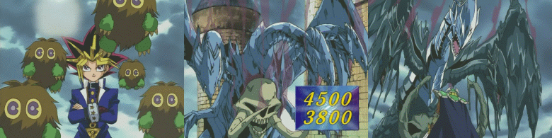 A párbaj tetőpontjához érkeztünk. Yugi, hogy bevédje magát kijátssza Kuriboh-t, párosítva a Sokszorosító nevű varázslap-pal. Valamint a Zombi Mamut és az Eleven Nyíl varázslap kombinációjával majdnem teljesen legyengíti Seto Háromfejű Kékszemű Hósárkány-át. A Kaiba fiú, vesztésre áll, ezért aljas lépésre szánja el magát. Kisétál a bástya szélére és megzsarolja ellenfelét, hogyha Yugi támad, a támadás szele őt is megöli. Közben előkerül a Kelta Gárdista, valamint Seto-nak sikerül felhúzni a Szörnyébresztő-t így hozva vissza sárkánya egyik fejét, teljes erejében.  Az Ezeréves Kirakó Szelleme valószínűleg úgy gondolja, Seto, csak blöfföl, és támadást indít a Kelta Gárdista-val, azonban Yugi az utolsó pillanatban leállítja, Seto pedig befejezi a játékot.